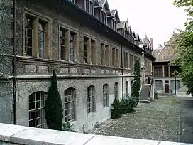 Young Calvin was particularly precocious. By age 12, he was employed by the bishop as a clerk and received the tonsure, cutting his hair to symbolize his dedication to the Church. He also won the patronage of an influential family, the Montmors.[3] Through their assistance, Calvin was able to attend the Collège de la Marche, Paris, where he learned Latin from one of its greatest teachers, Mathurin Cordier.[4] Once he completed the course, he entered the Collège de Montaigu as a philosophy student.[5]