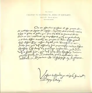 - The State Archives of Neuchâtel preserve the autograph correspondence sent by John Calvin to other reformers