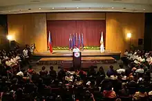 Binay giving a speech during his time as Vice President of the Republic of the Philippines (2010–2015)