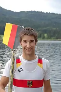 Until the end of 2010, Jonathan Koch was rowing for his hometown club Gießener Rudergesellschaft 1877. Already in summer 2010, he became part of the training group of Mainzer Ruder-Verein 1878 (MRV) under the supervision of Robert Sens, the rowing head coach of the German Federal State of Rhineland-Palatinate. Since 2011 he is officially rowing for MRV.[1] After reaching only the B-final at the 2006 World Rowing Championships in Single Sculls he reached the A-final the following year at the World Championships in Munich, Germany, where he finished fourth. Since the Lightweight Single Sculls are not an Olympic boat class, Koch competed at the 2008 Beijing Olympics together with Manuel Brehmer in the Men's Lightweight Double Sculls where they finished ninth.