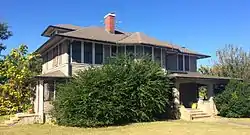 A 2+1⁄2-story structure, it features a hipped roof with a combination of stucco and wood clapboard siding for the exterior walls. A single story hipped-roof porch runs across the front of the home. The building possesses a multitude of other prairie-style elements and retains a high degree of architectural integrity. It was listed in the National Register of Historic Places on September 26, 1986, as NR ID Number 86002346.[4]