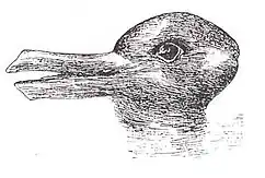 Jastrow was interested in perception, especially eyesight. He thought that eyesight was more complex than a camera, and that the mental processing of images was central to interpretation of the world.[31] He illustrated this through optical illusions, including the rabbit-duck illusion.[32] He believed that what people saw also depended on their emotional state and their surroundings.[33]