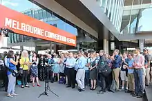 In February 2016 many of the climate scientists attending the annual AMOS conference in Melbourne participated in a lunchtime protest against the CSIRO cuts to climate research programs announced by CSIRO CEO Larry Marshall on 4 February 2016.[5]