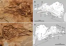 The holotype, BMNHC-PH 919, was found in a layer of the Yixian Formation that is roughly 126 million years old. It consists of a skeleton with skull, compressed on a plate and counterplate. The skeleton is largely associated, though the skull is detached. Bone conservation is excellent. Extensive remains of the plumage have been preserved.[1]
