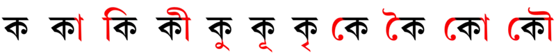 • Repha र্ (r) + क (ka) gives the ligature rka: note