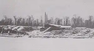 The sawmill that provided work for many residents was built by J.S. Blackwell in 1905, on a pond located about one-half mile west of the "Kaiser's Corner" spot. Blackwell contracted with J.W. and E.W. Noble to build and operate the mill. Logs were brought in by neighboring farmers and the lumber was then either sold, or shipped out to Park Falls by horse-drawn wagon. Operations expanded considerably when the Omaha Railway Line approached Park Falls and built a siding to the mill in 1910.[3]