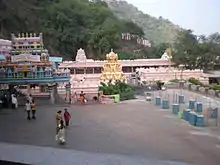 Kanaka Durga Temple, also known as Sri Kanaka Durgamma Devasthanam, is a Hindu temple dedicated to Kanaka Durga. The deity in this temple is also popularly referred as Kanaka Durga. The temple is located in Vijayawada, Andhra Pradesh, India on the Indrakeeladri Hills on the banks of Krishna River.[1] Kaalika Purana, Durgaa Sapthashati and other Vedic literature have mentioned about Kanaka Durga on the Indrakeelaadri and have described the deity as Swayambhu, (self-manifested) in Triteeya Kalpa.