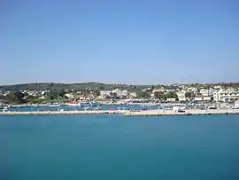 Kastro-Kyllini (Greek: Κάστρο-Κυλλήνη) is a former municipality in Elis, West Greece, Greece. Since the 2011 local government reform it is part of the municipality Andravida-Kyllini, of which it is a municipal unit.[2] The municipal unit has an area of 49.322 km2.[3] The population was 3,622 in 2011. The municipality Kastro-Kyllini was created in 1999 as part of the Kapodistrias reform from the formerly independent communities Kyllini, Kato Panagia, Kastro and Neochori, that became municipal districts. After the 2011 Kallikratis reform, these municipal districts became (dependent) communities. Its seat of administration was the small port town of Kyllini.
