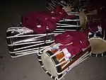 Three types of drums of Kathakali: Maddalam (left), Chenda and Idakka (right)