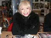 Catherine Ann "Katy" Manning (born 14 October 1946)[1][2] is a British actress. Although she has made many appearances on both screen and stage, Manning is best known for her part as the companion Jo Grant in the BBC science fiction television series Doctor Who. Manning initially played the role regularly from 1971 to 1973 but also reprised the role in the Doctor Who spin-off The Sarah Jane Adventures in 2010.[3] She is also well known for voicing Iris Wildthyme in the audio series Iris Wildthyme for Big Finish Productions since 2005.
