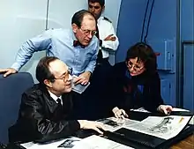 Bacon and Secretary of Defense William J. Perry during a flight to Europe, 1995