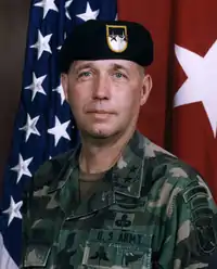 Bowra was assigned command of the U.S. Army Special Forces Command (Airborne) in May 1996 where he helped to develop the first human rights policy for US special forces soldiers.[1] Bowra was given command of the John F. Kennedy Special Warfare Center and School in March 1998 and in March 2000 was deputy-commander of the NATO headquarters of Kosovo Force (KFOR) with responsibility for overseeing all KFOR operations (including Russian forces) and providing support for elections in the country. He was appointed assistant chief of staff of NATO's Allied Forces Northern Europe in January 2001 and was simultaneously the senior American military representative to the Netherlands. Bowra retired from the army as a major-general on 1 October 2003. He now works for the State Department as a diplomat at the US embassy in Saudi Arabia.[1] Bowra has written about the Vietnam and Cambodian wars.[2]