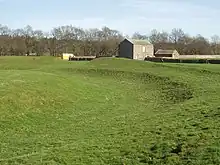 Excavations were undertaken in 1937 by R. G. Collingwood and continued in 1939 by Gerhard Bersu.[1] The excavations showed that the ditch had been cleared out and reshaped and the entrance through it made narrower in modern times. Collingwood claimed to have identified a number of structures, represented by postholes, and identified a "cremation trench" near the centre of the site. Bersu, however, contradicted most of Collingwood's findings, arguing that the posthole features were not of archaeological significance, and he found no evidence of cremation burning, although he accepted that there might be a disturbed grave.[1] However Grace Simpson (1998), the daughter of the excavator F.G. Simpson, and Stephen Leach (2019) have queried Bersu's work and largely rehabilitated Collingwood as an excavator.[3][4]