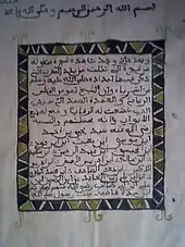 By this means the Mokrani became vassals of the Bey of Constantine, though with unusual arrangements. Rather than paying tribute to him, they received it in the form of the "ouadia", which gave him the right to march his troops over their land. He recognised the right of the Sheikh of the Medjana to administer justice, and it was agreed that the fort at Bordj Bou Arreridj was not to be rebuilt. In 1803 the Mokranis faced a peasant revolt from the Ouled Derradj, Madid, Ayad, Ouled Khelouf, Ouled-Brahim and Ouled Teben, led by sheikh Ben el Harche.[48] Ben el Harche, a religious leader, defeated the army of Osman Bey, who died in battle.[49] He based himself in the Djebel Megris, but died fighting in 1806 after two battles against the Mokranis, supported by a column of Turkish troops from the Bey.[48]