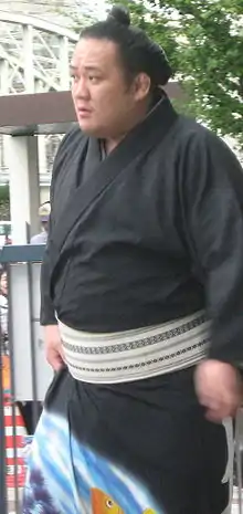 Kitataiki Akeyoshi (北太樹 明義, born 5 October 1982) is a former professional sumo wrestler from Machida City, Tokyo, Japan. Making his debut in March 1998, he reached the top division for the first time in September 2008, returning in January 2010. He won two second division jūryō championships in his career. His highest rank was maegashira 2. He retired in January 2018 and became an elder of the Japan Sumo Association under the name of Onogawa.