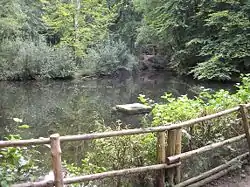 In the northwest area of the Reichswald the protected areas 'Quellen am Stoppelberg' is (ca. 2,9 ha, in Kleve[3]) and in the middle of the forest the protected area ‘Geldernberg’ (ca. 580 ha, in Kleve, Kranenburg and Goch[4]). ‘Geldernberg’ is known as the core area of the Reichswald and is stated as the FFH-Area DE-4202-302 Reichswald, which puts it in the European network of protected areas Natura 2000. The AONB Geldenberg is of particular importance because it is the largest, largely closed, predominant hardwood old-growth forest in the Reichswald[4] and is home to endangered species like the golden oriole, black woodpecker, honey buzzard and stag beetle.
