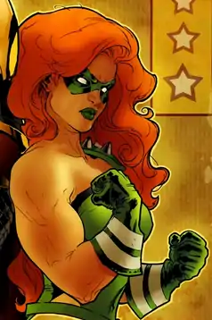 Since then she has been revealed to be on the loose and has joined up with the Society as seen in Villains United. In that book, she was revealed to have joined the Society as a mole at the request of her lover, Scandal Savage, a member of the Secret Six.[9]
