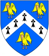 - ↑ Arms of Sir John Shapcote, as depicted in stained glass, Bampton church Sable, 3 dovecots argent; see also Shapcott family website. These arms can also be seen on the memorial tablet in Knowstone Church erected by Elizabeth to her grandson Philip Shapcote