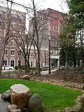 After the war, northern investors such as brothers Joseph and David Richards helped Knoxville recover relatively quickly. The Richards brothers convinced 104 Welsh immigrant families to migrate from the Welsh Tract in Pennsylvania to work in a rolling mill. These Welsh families settled in an area now known as Mechanicsville.[48] The Richards brothers also co-founded the Knoxville Iron Works beside the L&N Railroad, also employing Welsh workers. Later, the site was used as the grounds for the 1982 World's Fair.[49]