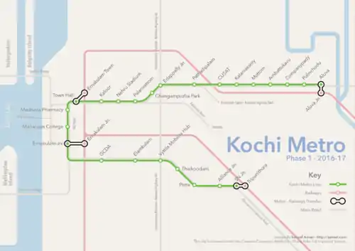 - 1 2 "Themed stations, women loco pilots, and other fun facts about Kochi Metro Rail". The News Minute. 20 May 2017. Retrieved 20 January 2018.