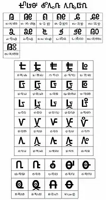 The script uses a combination of 26 consonant letters, eight vowel letters and a diphthong marker. Each letter represents a single sound and there are no capital letters.[14] A computer-based font has been created.[16] The script was developed out of the request by a group of Kodava individuals to have a distinct script for Kodava Takk, to distinguish the language. Kodava Takk is generally written in the Kannada script, but can also be found written in the Malayalam script, especially along the borders with Kerala. The new script is intended as a unified writing system for all Kodava Takk speakers.[17]