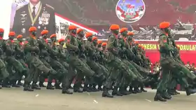 Kopasgat troops on parade wearing their distinctive orange berets