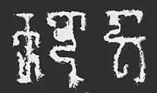 The name of the "Great King of Kings" Ku-ṇḍu-ṅga in the Brahmi script, in an inscription of his grandson Mulavarman, 5th century CE.[1]