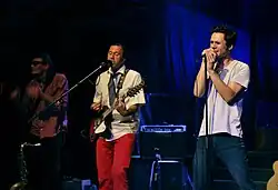 ![]() Kumm during a live performance, October 2017. Left from right: Mihai Iordache, Oigăn, John Ciurea, Cătălin Mocan, Dan Georgescu, Kovács András. | |