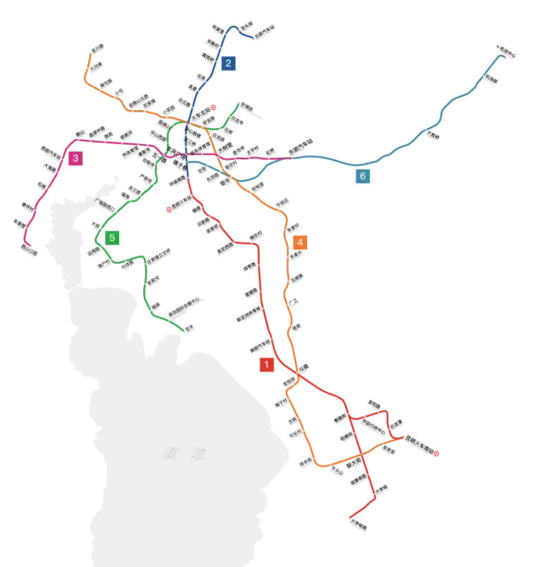 - ↑ "昆明地铁6号线二期力争明年底达到通车条件_云南网". yn.yunnan.cn. Retrieved 2019-01-22.