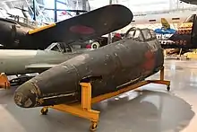 The sole surviving J7W1 was reassembled, but has never been flown in the United States; the USN transferred it to the Smithsonian Institution in 1960.[13] Its forward fuselage is currently on display at the Steven F. Udvar-Hazy Center annex (at Dulles Airport) of the National Air and Space Museum in Washington DC.[4][11] According to the NASM, 'miscellaneous parts' are stored at Building 7C at the older storage/annex facility, the Garber Facility in Suitland, Maryland.[14]