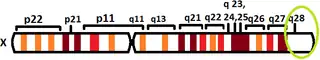 The human L1CAM gene is found in X chromosome regions that are implicated in different neuromuscular diseases, and near the one associated with mental retardation. L1CAM gene is located in the long arm of X chromosome in Xq28 position.[10][11]