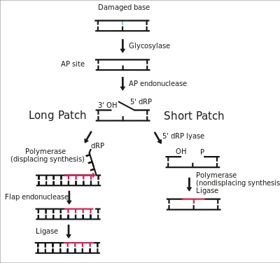 - 1 2 Sattler U, Frit P, Salles B, Calsou P (April 2003). "Long-patch DNA repair synthesis during base excision repair in mammalian cells". EMBO Reports. 4 (4): 363–7. doi:10.1038/sj.embor.embor796. PMC 1319152. PMID 12671676.