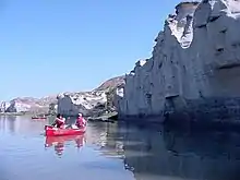 LaBarge Rock is part of the White Cliffs (aka White Canyon or White Rocks) region of the Missouri, along with other natural features and cultural sites in this area. It is named for the extensive cliffs of white sandstone/shale that appear on both banks of the river for long stretches. This section of the river is within the remote and isolated Missouri Breaks. Because of the White Cliffs' arresting appearance which received recent exposure from Stephen Ambrose's book on the Lewis and Clark's Expedition, "Undaunted Courage",[10] there have been growing numbers wishing to float this portion of the Missouri from Coal Banks Landing (BLM Mile 41) to Judith Landing (BLM Mile 88).[11]