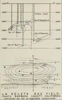- ↑ Swayze, R.O. (1943). "La Goleta Gas Field". Geologic formations and economic development of the oil and gas fields of California. State of California Division of Mines ("Swayze"). p. 385. Retrieved January 12, 2016.