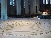 The use of labyrinths has recently been revived in some contexts of Christian worship. Many churches in Europe and North America have constructed permanent, typically unicursal, labyrinths, or employ temporary ones (e.g., painted on canvas or outlined with candles). For example, a labyrinth was set up on the floor of St Paul's Cathedral for a week in March 2000.[57] Some conservative Christians disapprove of labyrinths, considering them pagan practices or "new age" fads.[58]