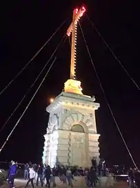 The Laferla Cross is closely linked to Catholic cultural traditions and constitutes a yearly meeting point for Maltese pilgrims during the night on Maundy Thursday and Good Friday. Since 1994, the steep hill leading to the Cross has been illuminated with torches and candlelight during this celebration, forming a pathway originating from statues of Jesus symbolizing his final hours before crucifixion. The pilgrimage is taken in a spirit of worship and silence, and some devout Catholics choose to walk the steep hill on bare feet.[1]