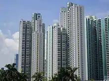 Nam Cheong Estate (Chinese: 南昌邨) is named from nearby Nam Cheong Street, a main street in Sham Shui Po District. It consists of seven residential blocks completed in 1989.[15] In 2005, the estate was sold to tenants through Tenants Purchase Scheme Phase 6B.[16]