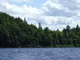 The lake runs about six miles (9.7 km) east to west, with a southern arm extending about another four miles (6.4 km). A dam separates the Michigamme River from the main body of the lake at the end of the southern arm. The Spurr River flows into the lake's west end and the Peshekee River flows into the lake in the northeast. Van Riper State Park and Van Riper beach are located at the eastern shoreline of the main arm. The lake is speckled with many islands and rock beds that often creep over the waterline in late summer and fall.