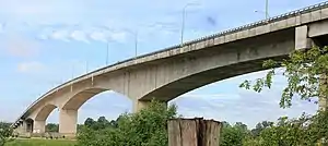 The Lanang Bridge, Sarawak State Route Q326, is a 1.2-km toll bridge in Sibu, Sarawak, Malaysia. It was constructed in 2003 by a local concessionaire, Woodville Development Sdn. Bhd., a subsidiary of Shin Yang Group, to replace the former river ferry service crossing the Batang Rajang.[1] The bridge, together with a series of states highways linking Sibu to Sarikei (Jalan Teluk Assan Q326, Jalan Tanjung Genting Q576, Jalan Kelupu Q206, Sarikei-Bintangor Highway Q345, and Sarikei-Pasi-Meradong Highway Q575), forms an alternative route for the Sarikei-Sibu section of the Pan Borneo Highway. Built at the total cost of RM 180 million, the bridge was opened to motorists on 11 April 2006.[2]