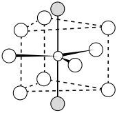 Bonding is ionic with lanthanum highly coordinated. The cation sits at the center of a trigonal prism. Nine fluorine atoms are close: three at the bottom corners of the trigonal prism, three in the faces of the trigonal prism, and three at top corners of the trigonal prism. There are also two fluorides a little further away above and below the prism. The cation can be considered 9-coordinate or 11-coordinate.[4] At 300 K, the structure allows the formation of Schottky defects with an activation energy of 0.07 eV, and free flow of fluoride ions with an activation energy of 0.45 eV, making the crystal unusually electrically conductive.[5][6]