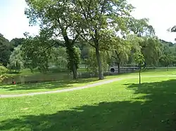 Larz Anderson Park is a wooded, landscaped, and waterscaped 64-acre (26 ha) parkland in Brookline, Massachusetts that is listed on the National Register of Historic Places. The southwest corner of the park is in Boston.[1][2] The park contains playing fields, picnic areas, gardens, waterways, an ice skating rink, and two sites of special interest: