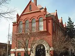 In 1888, Watkins National Bank opened at 11th and Massachusetts. Founded by Jabez B. Watkins, the bank would last until 1929. Watkin's widow Elizabeth, a philanthropist who also funded buildings for the University of Kansas and two local hospitals, donated the bank building to the city to use as a city hall.[123] In 1970, the city built a new city hall and after extensive renovations, the bank reopened in 1975 as the Elizabeth M. Watkins Community Museum.[124]