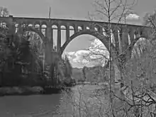 The Le Day viaduct (viaduc du Day) is a railway viaduct in Vallorbe in the Jura-Nord vaudois District of the Swiss canton of Vaud. It stands near the hamlet of Le Day and crosses the Orbe. This has been dammed since 1955 by the Le Day dam (Le barrage du Day), which lies 450 m downstream.