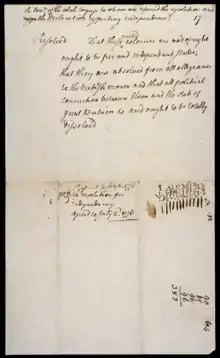 - ↑ Milestones: 1776–1783: The Model Treaty, 1776, Department of State, Office of the Historian. Via the Internet Archive.