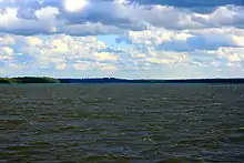Leech Lake (translated from the Ojibwe language Gaa-zagaskwaajimekaag: Lake abundant with bloodsuckers) is a lake located in north central Minnesota, United States. It is southeast of Bemidji, located mainly within the Leech Lake Indian Reservation, and completely within the Chippewa National Forest. It is used as a reservoir. The lake is the third largest in Minnesota, covering 102,947.83 acres (416.6151 km2) with 195 miles (314 km) of shoreline and has a maximum depth of 156 feet (48 m).[2]