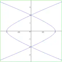 In algebraic geometry, the lemniscate of Gerono, or lemniscate of Huygens, or figure-eight curve, is a plane algebraic curve of degree four and genus zero and is a lemniscate curve shaped like an symbol, or figure eight. It has equation