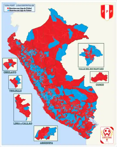 The Ligas Distritales del Peru are the Peruvian football lower divisions. They are administered by the Local Federations. The level immediately above is the Liga Provincial (Copa Perú).