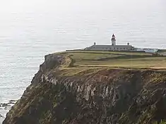 The main lightouse and lighthouse keeper block on the edge of the cliff