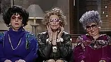 In what could be considered to be the sketch's most memorable moment, Myers was joined on February 22, 1992, by special guests Madonna and Roseanne Barr as other stereotypical Jewish women. Madonna also lampooned herself by having her character attack Madonna as a bad example for teenage Jewish girls ("She's a tramp. Every week with the different boyfriend! And this week in the papers with no clothes on! Who needs her? Feh!!"), referring to the hitchhiking scene from Madonna's "Erotica" video. They discussed Streisand's film The Prince of Tides (1991) on the show.