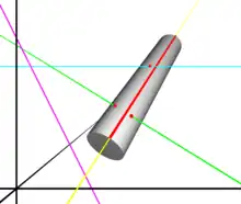 Line-cylinder intersection is the calculation of any points of intersection, given an analytic geometry description of a line and a cylinder in 3d space.
